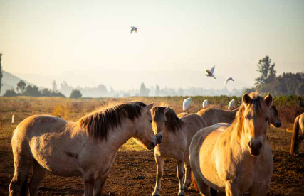A biodiversidade também desempenha um papel fundamental: cavalos Norwegian Fjord – os únicos existentes no Chile – circulam livremente e substituem máquinas pesadas nos vinhedos, o que reduz a compactação do solo e promove regeneração natural; a apicultura com colmeias próprias contribui para a polinização e a saúde do vinhedo; e a incorporação de ilhas ecológicas estimula a presença de insetos benéficos.